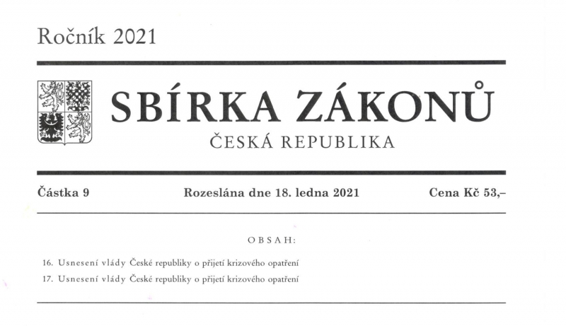 USNESENÍ VLÁDY ČESKÉ REPUBLIKY ze dne 18. ledna 2021 č. 53 o přijetí krizového opatření.