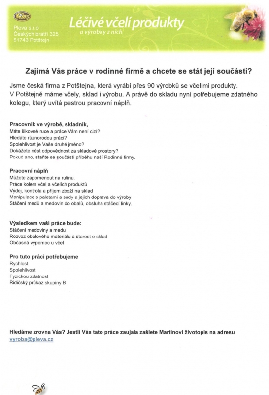 Hledáme do pracovní pozice skladníka do rodinné firmy Pleva s.r.o.
