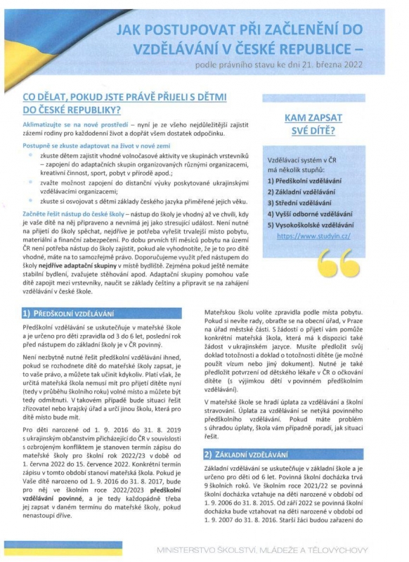 Podpůrný materiál k začlenění děti z Ukrajiny do vzdělávacího systému České republiky