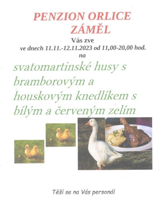 Svatomartinska husa - penzion Orlice Záměl 11. a 12. 11.2023