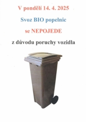 Svoz BIO popelnic se NEPOJEDE z důvodu poruchy vozidla