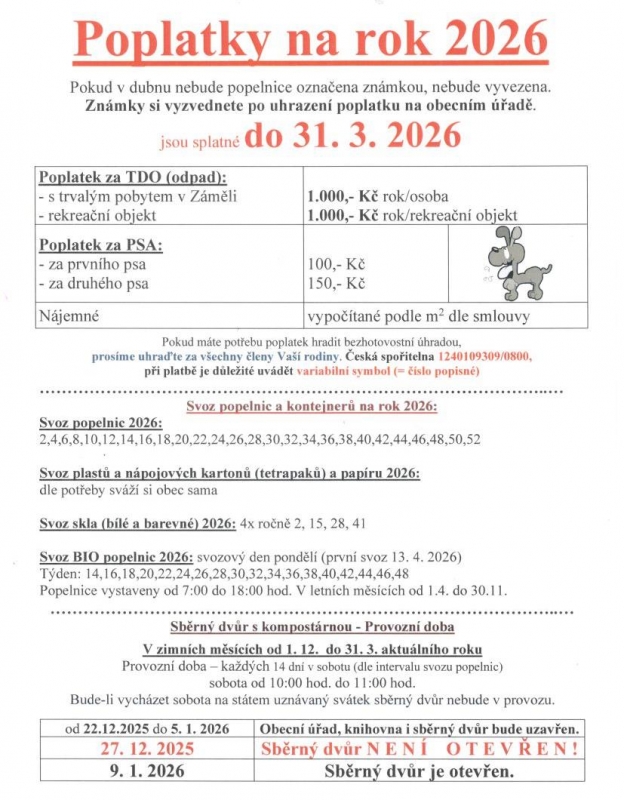 Poplatky na rok 2026