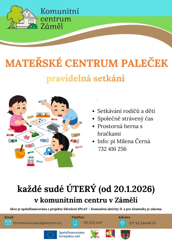 Pravidelná setkávání rodičů a dětí v herně komunitního centra. Každé sudé úterý v devět hodin. Těšíme se na Vás.